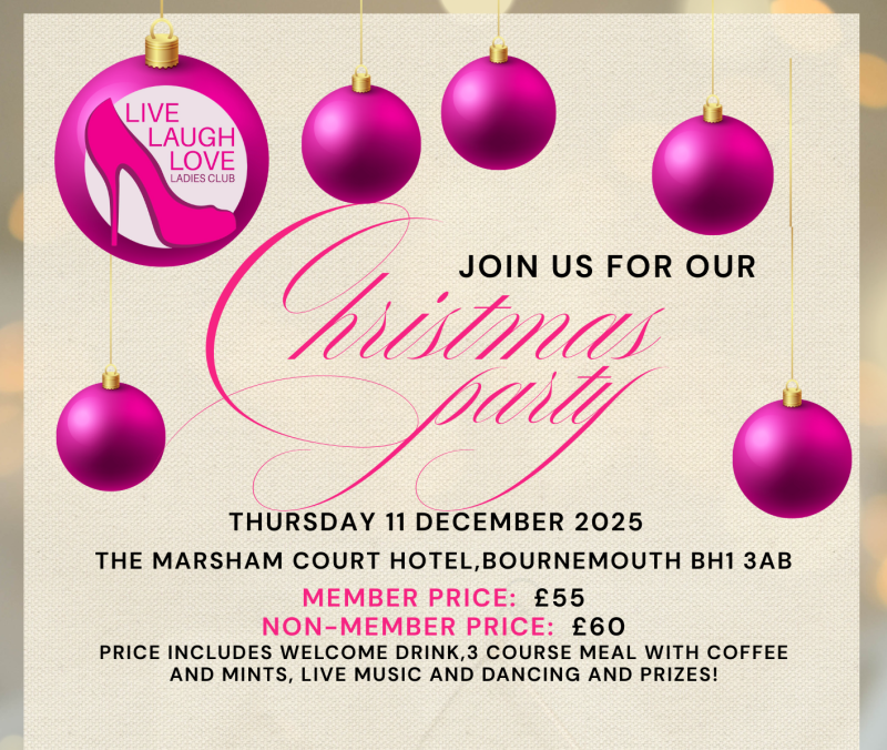 Please contact the hotel directly on 01202 552111 and quote Live Laugh Love Ladies Club if you would like to book a room. Don't delay as rooms are subject to availability.